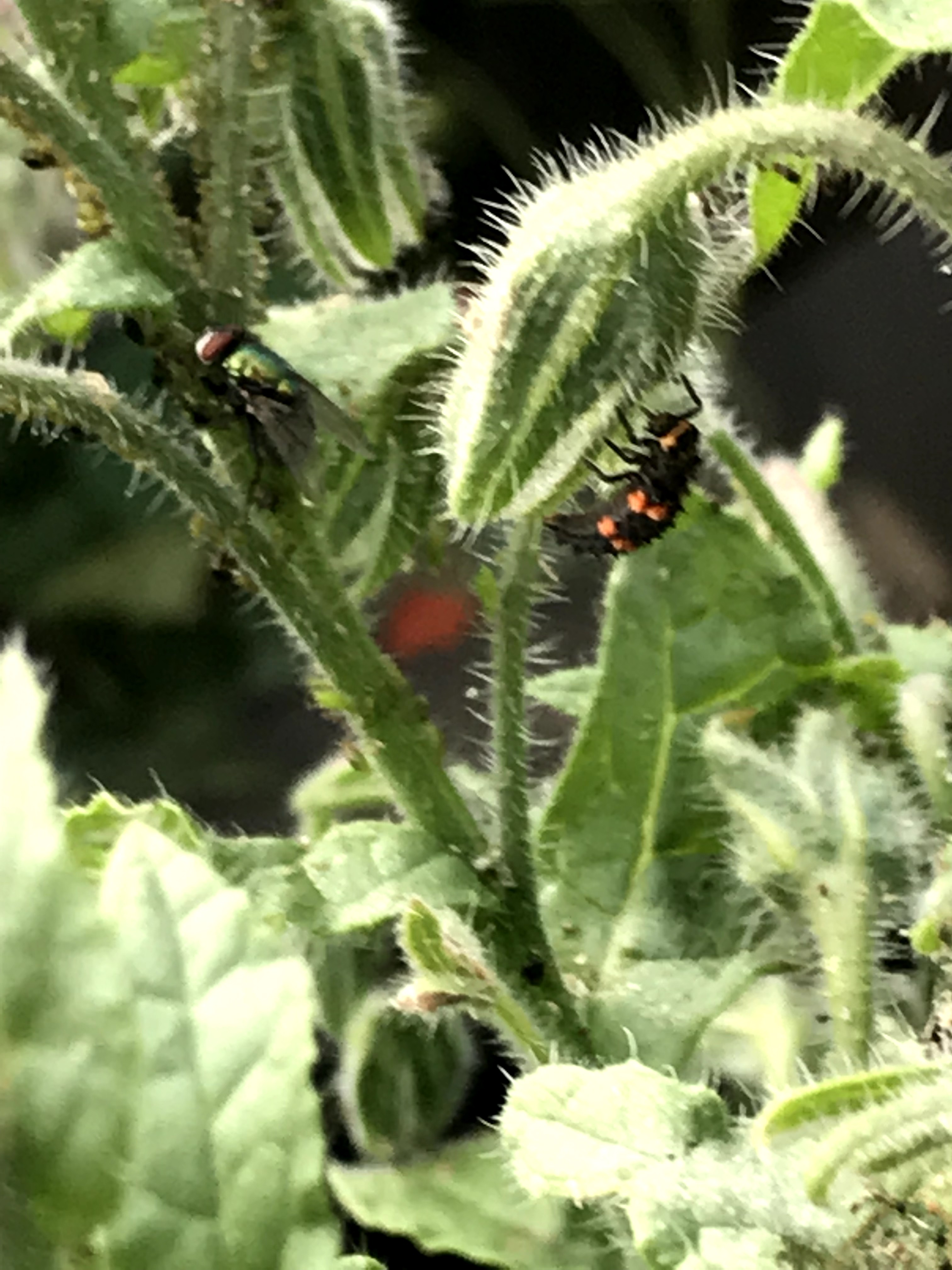 I'll have a blog done soon on the good bugs you want! Here's one! This weird green thing on this aphid infested sunflower leaf is a hoverfly larvae. Note, this year I'm growing buckwheat under my sunflowers, it's said to help with Sunflower aphids, the chickens love it & it improves the soil, so a win regardless!