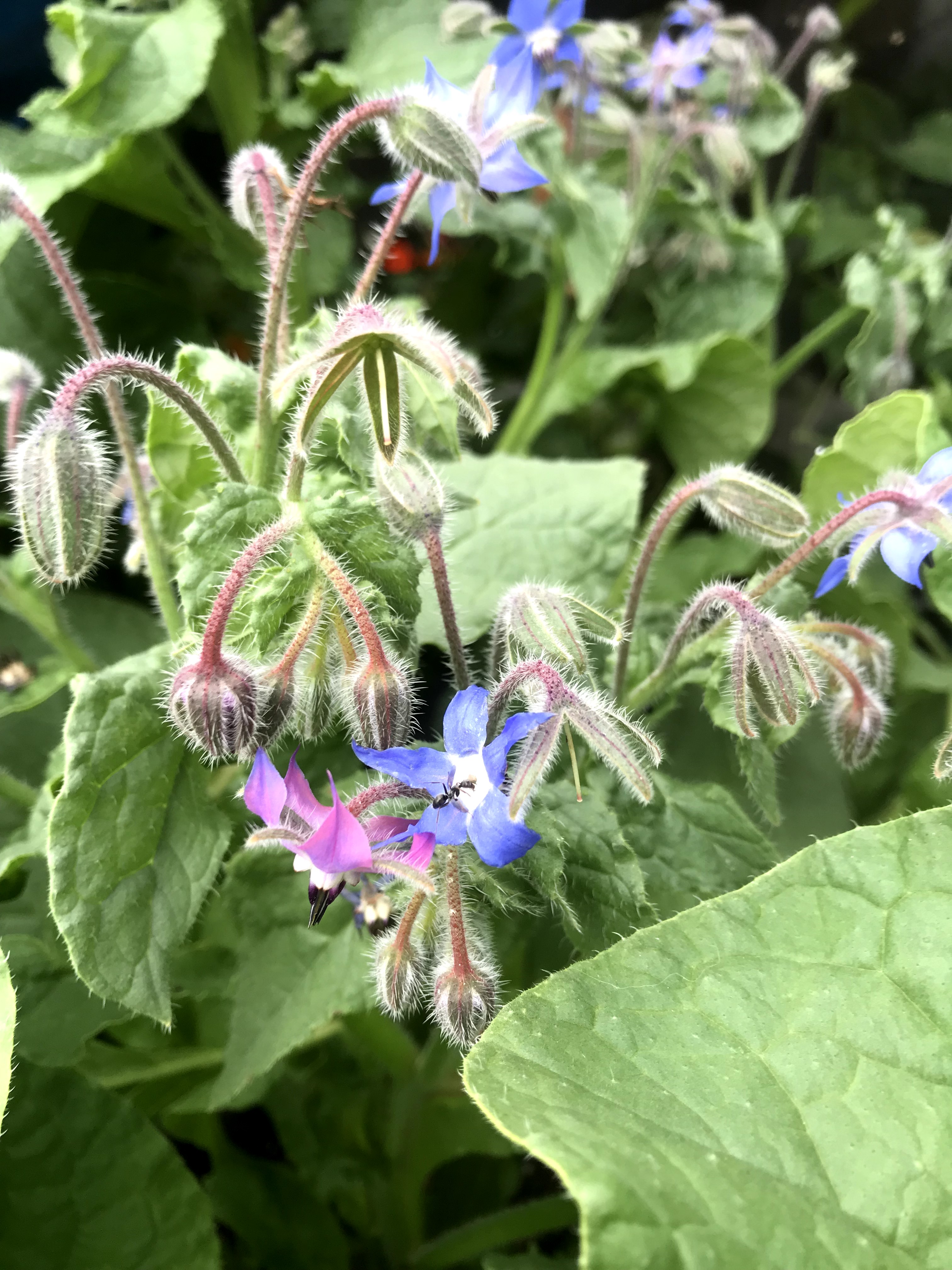 Borage - Annual. This is really a rockstar! Poke a seed, walk away, not a big fan of transplanting. A must in every yard! Can be large if it has space or you can chop it back and add the leaves to your compost. Edible.