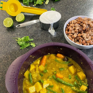Add Coconut milk, your precooked beans (Seeds) & quick-cooking ingredients, like greens. Cook until greens are nicely wilted.